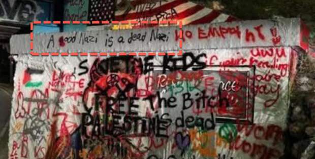 “Rest in peace, Charlie Kirk" was defaced with ANTIFA propaganda.@libsoftiktok pic.twitter.com/2alPMzkv41 — Scarlett Johnson (@scarlett4kids)