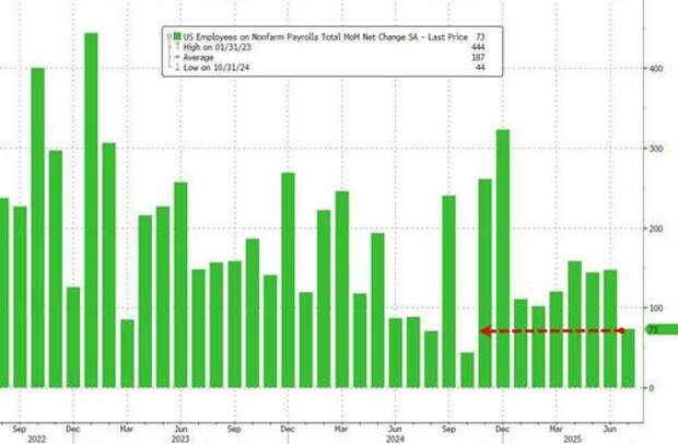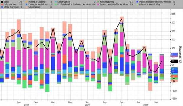 The number of jobs came in below the 80-100k breakeven level estimated by Fedʼs Barkin, suggesting Trump may have literally instructed the BLS to print a number that basically forces Powell's hand to cut.