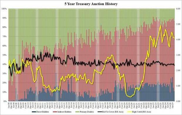 Hot on the heels of yesterday's stellar 2Y auction, moments ago the Treasury sold $70BN in 5 year paper in an auction which may not have been quite as impressive at first sight, but which was nonetheless just as solid when taking a closer look below the surface.