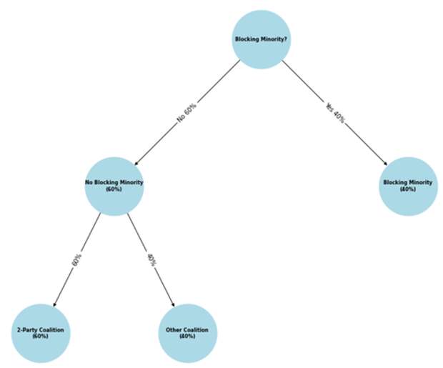 - Assuming AfD gets around 20-25% of the vote, if 2 of either FDP/Linke/BSW get over 5%, then there will likely be a constitutional blocking minority.