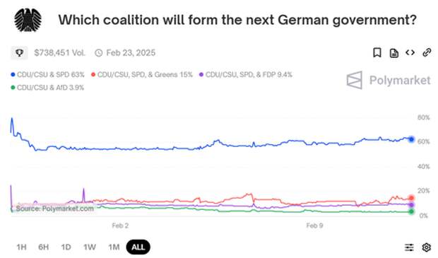 - 1. most bullish scenario = 2-party coalition of CDU/SPD winning over 50% of vote (they currently polling 47% per Politico Poll of Polls) leading to “fiscal 'bazooka”/constitutional change of German “debt break” (can’t run structural budget deficit),