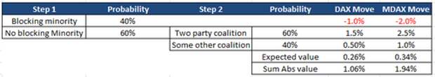 - We think the distribution skews slightly positive on the event with MDAX having higher beta (given more domestic exposure).