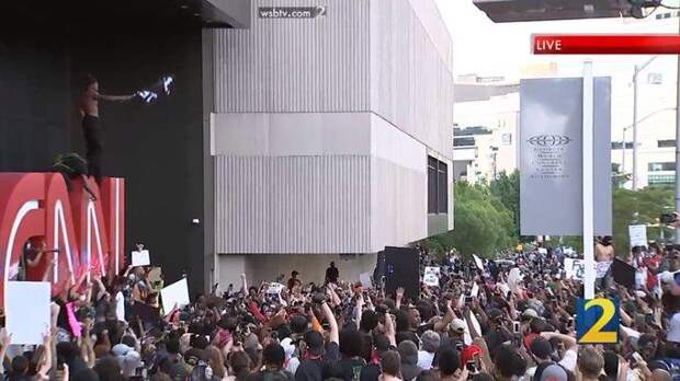 Down in Atlanta, CNN's headquarters were attacked by protesters on Friday evening.