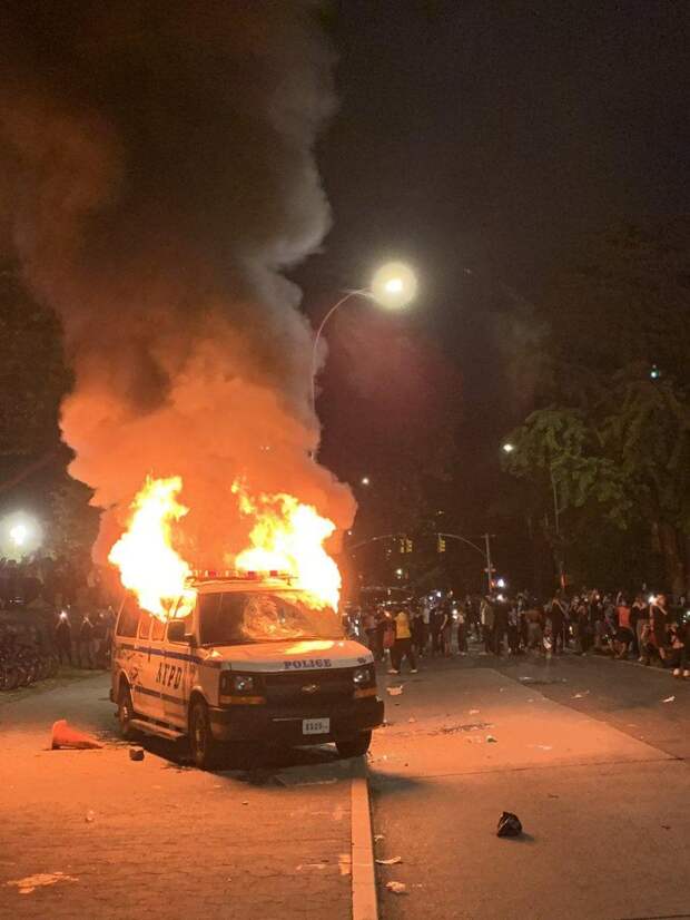 #Breaking Protesters set #NYPD van on fire. @NY1 @RonLeeReporting captured this video in Fort Green, #Brooklyn. pic.twitter.com/cefEVet9gO