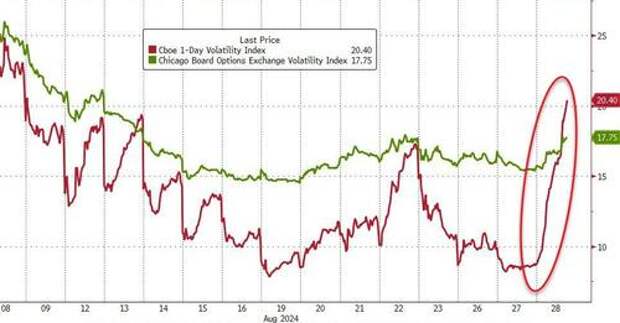 1-Day-VIX soared higher ahead of tonight's earnings news (higher than VIX)...