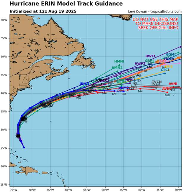 "Erin forecast to substantially grow in size while moving over the western Atlantic through the week," National Hurricane Center Meteorologist Robbie Berg wrote in a note, warning, "Dangerous rip currents expected along U.S. East Coast beaches."