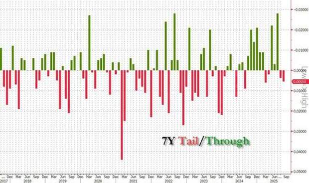 925%. It also tailed the When Issued 3.947 by 0.6bps, the biggest tail since August 2024.The bid to cover was just 2.395, a big drop from 2.489 in August and the lowest since March 2023.