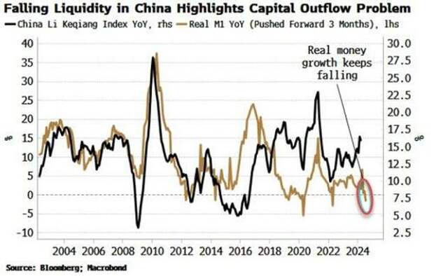 Cuts in the required reserve ratio, with another one expected next month, and interest-rate reductions can help alleviate this decline. Another lever is the currency. A weaker yuan eases the pressure on the fall in the monetary base as capital leaves.