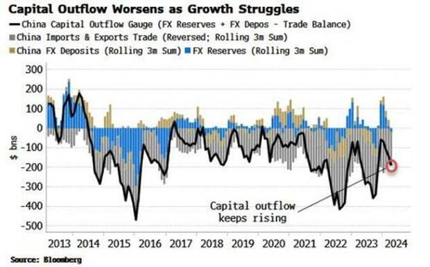 The latest money data from China shows its capital-outflow problem is worsening, pressuring policymakers to allow a further weakening in the currency.