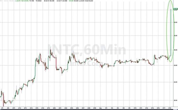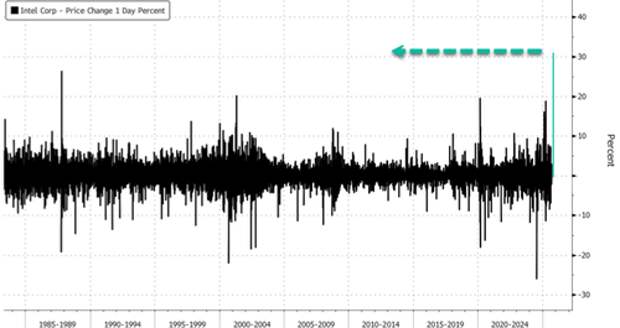 But not even we could predict what happened next: Intel shares are soaring in premarket trading - and if gains of 30% hold until the close it would mark the largest daily increase on record in Bloomberg data, dating back to the early 1980s...