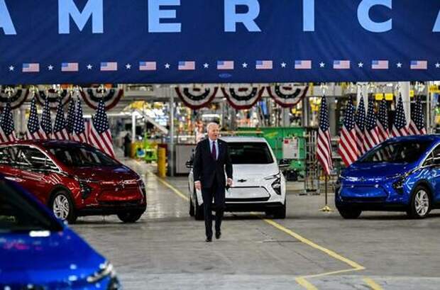 President Joe Biden walks near Chevy vehicles as he arrives to deliver remarks during a visit to the General Motors Factory ZERO electric vehicle assembly plant in Detroit on Nov. 17, 2021. Mandel Ngan/AFP via Getty Images