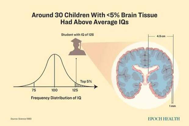 Among them, one university student had excellent grades, a first-class honors degree in mathematics, an IQ of 126, and was socially normal. This math genius’s brain was only 1 millimeter thick, while an average person’s is usually 4.5 centimeters thick—44 times larger.