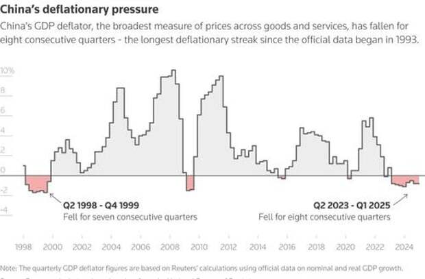 China’s GDP deflator, the broadest measure of prices across goods and services, continues to decline as economic activity erodes.