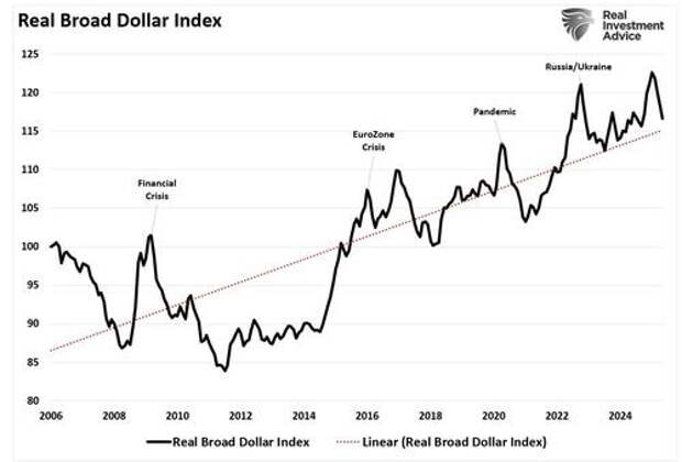 This exodus of domestic and foreign capital will reshape the global macro landscape. We recently discussed that the “Death of the Dollar” narrative was vastly exaggerated. While that post goes into more detail, there are five primary reasons why the dollar will remain the reserve currency of the world: