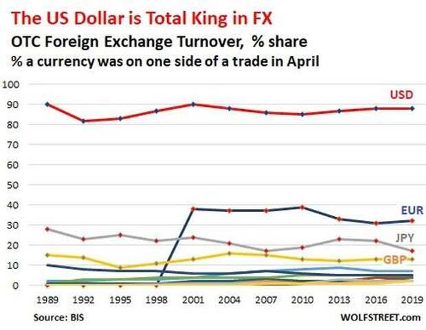 Most importantly, the dollar dominates the composition of global currency transactions.