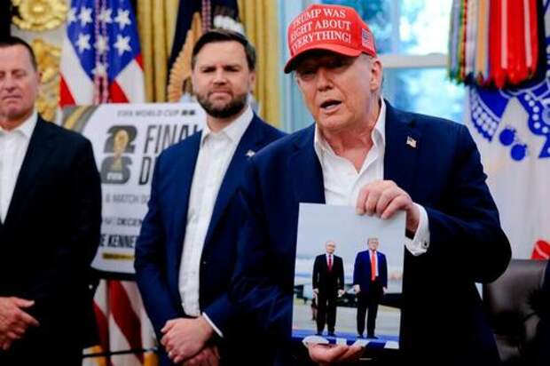 At the event, Trump showed a photo of himself with Putin, taken at last week’s Alaska summit. He stated that the Russian president may visit the United States for the World Cup next summer.