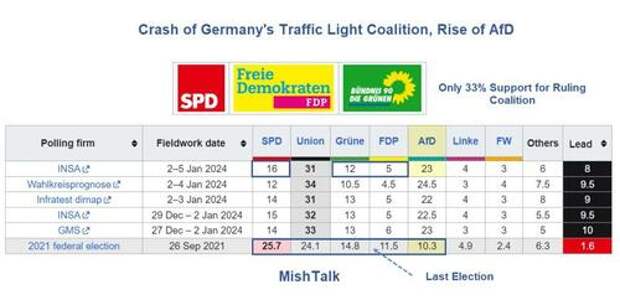 Problems arose from the start because FDP is pro-business and the Greens are as far from pro-business as you can get. The Traffic Light has gone from 52% in the last election to 33 percent today.