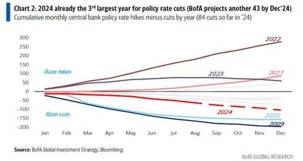 In fact, one may not realize it with inflation still at nosebleed levels for most people, but a few weeks ago, Bank of America calculated that 2024 is already the 3rd best year for rate cuts on record, with just the crisis 2009 and 2020 ahead!Then again, cutting rates is easy: the problem is what happens when you have cut rates a few times and suddenly inflation is roaring back with a vengeance, and the central bank is facing a catastrophic credibility collapse similar to that experienced by the Arthur Burns Fed, when the US central bank hiked rates in the early 1970s as inflation soared, before cutting as inflation seemed to normalize, only to see a second, far more brutal surge in inflation over the next few years leading to the calamity that was the Volcker Fed's 20% interest rates.