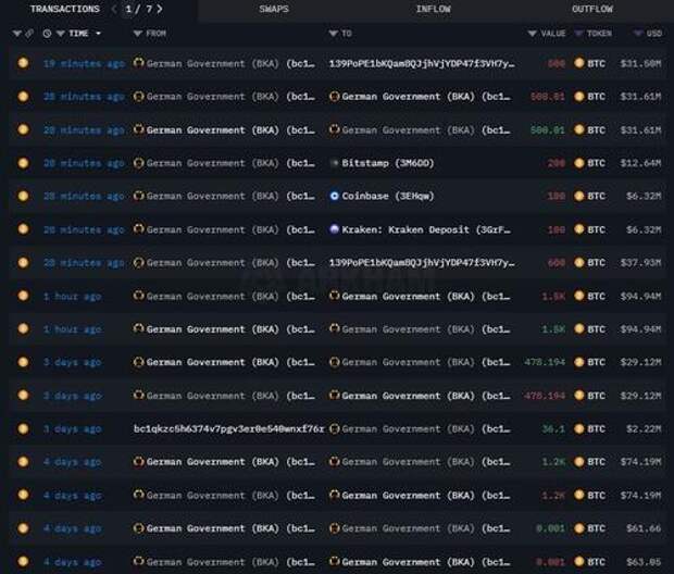 German government BTC transfers