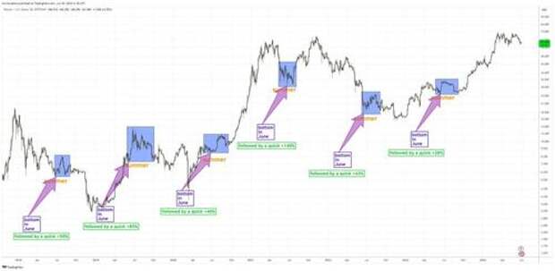 Murad noted that Bitcoin had posted minimum gains of 28% in the first few weeks of every July for the last six consecutive years.