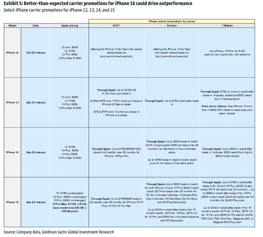 They expect better carrier promotions for iPhone 16 could drive outperformance in sales.