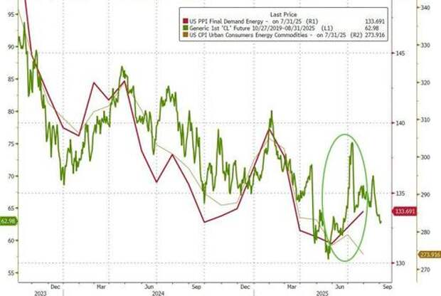 PPI Energy prices are accelerating, tracking the oil price jump (but that will decline next month)...