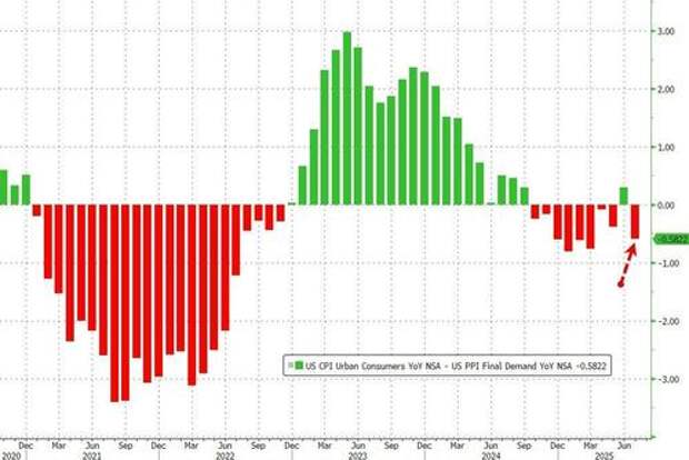 - PPI YoY rose 3.3% for the 12 months ended in July, the largest 12-month increase since rising 3.4% in February 2025.