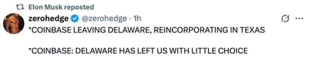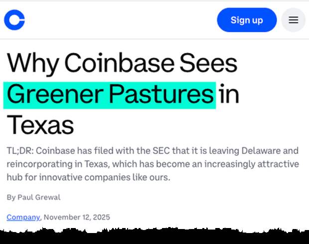 On Wednesday morning, Coinbase joined the growing exodus, announcing on its website and in a Wall Street Journal op-ed by Chief Legal Officer Paul Grewal that it is moving its state of incorporation from Delaware to Texas.