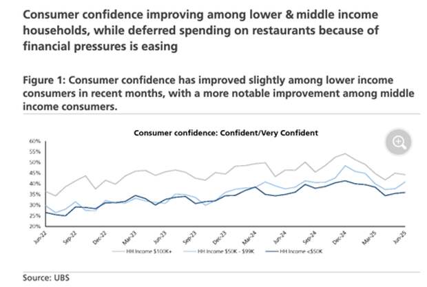 The U.S. restaurant industry is entering the second half of the year with renewed momentum, supported by improving sales trends, easing headwinds, and a rebound in confidence among lower- and middle-income consumers, according to a new note from UBS.