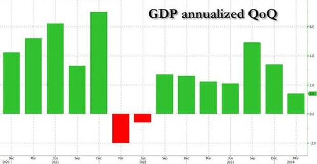 While absolutely nobody cared about today's final Q1 GDP print - which in 3 days will cover a quarter that is more than three months old - there were two notable things about the print: first, the headline number came in fractionally higher than last quarter's downward revised print, printing at an annualized 1. 4% increase, up from 1.3%. That was also right on top of estimates. Despite the slight upward revision to the final number, the 1.4% print was still the lowest since June 22 when the mini technical recession ended.