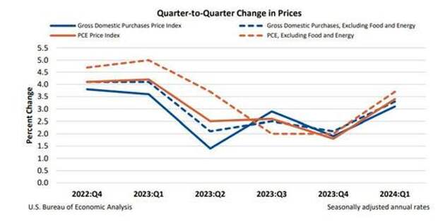 - Gross domestic purchases prices, the prices of goods and services purchased by U.S. residents, increased 3.1 percent in the first quarter after increasing 1.9 percent in the fourth quarter. Excluding food and energy, prices increased 3.3 percent after increasing 2.1 percent.