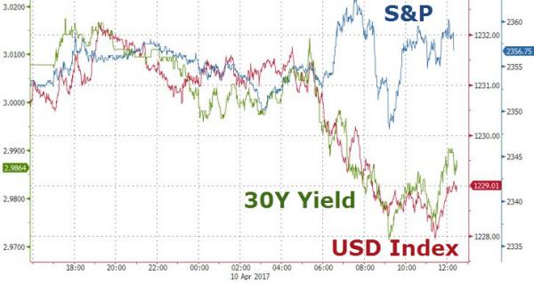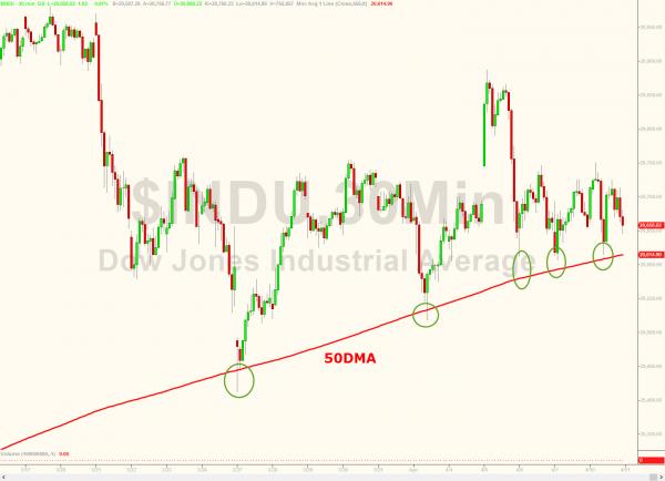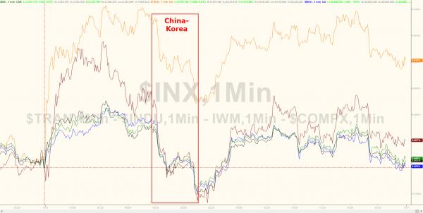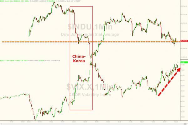 China-Korea headlines spooked stocks just before lunch but desperation kept The Dow green by 1 point!!