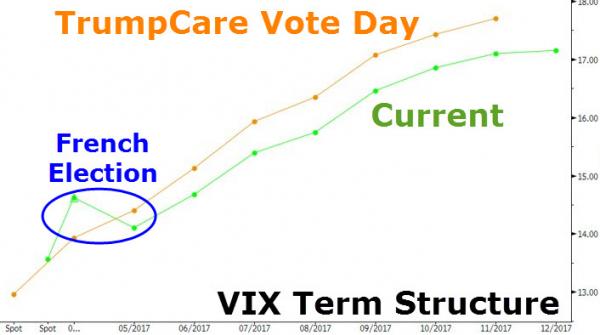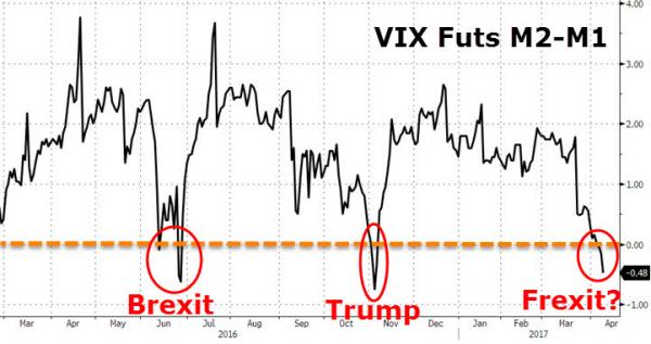 It seems markets are - for now - ignoring the VIX term structure inversion around the French elections...