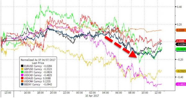 The Bloomberg Dollar Index drifted into the red today - dragged by strength in Cable and the Loonie...