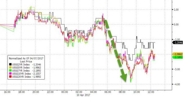 Treasuries were flat overnight but bid during the EU session to end the day down around 2bps (and modestly flatter)...