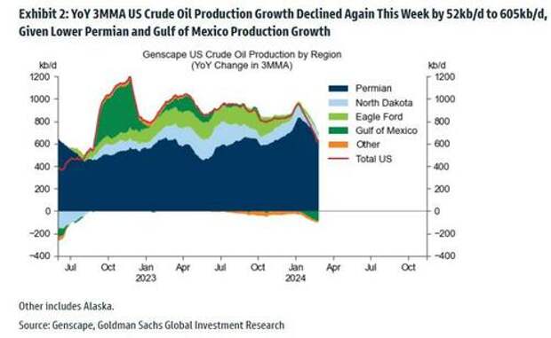 The move is hardly a surprise with traders and analysts widely expecting the extension, seeing it as necessary to offset a seasonal lull in world fuel consumption and soaring production from several of OPEC+’s rivals, most notably US shale drillers which are maximizing output to boost their prospects amid the unprecedented merger wave sweeping the US shale patch; however as shown in the chart below, the latest OPEC+ supply curbs come just as US shale output has peaked and growth is starting to shrink again, assuring that the next move in oil will be higher, perhaps violently so.