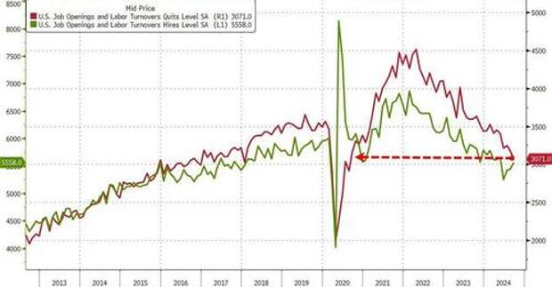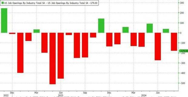 Last month, when Kamala Harris still had some chance of winning the election, we were not surprised to learn that according to the extremely political Bureau of Labor Statistics, in August the number of job openings unexpectedly soared from an upward revised 7.