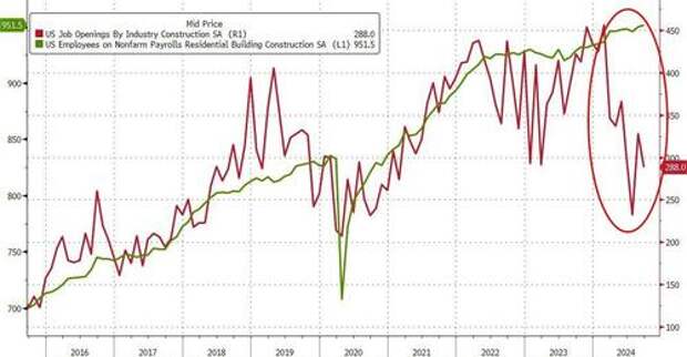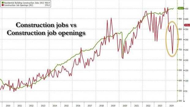 ... the BLS realized that it had to make an adjustment after getting called out, and Construction Job openings tumbled by 40K to 288K and once again rapidly approaching the post-covid lows. Oh, and yes, the number of "construction jobs" is about to fall off a cliff just as soon as Orange Man Bad enters the White House.