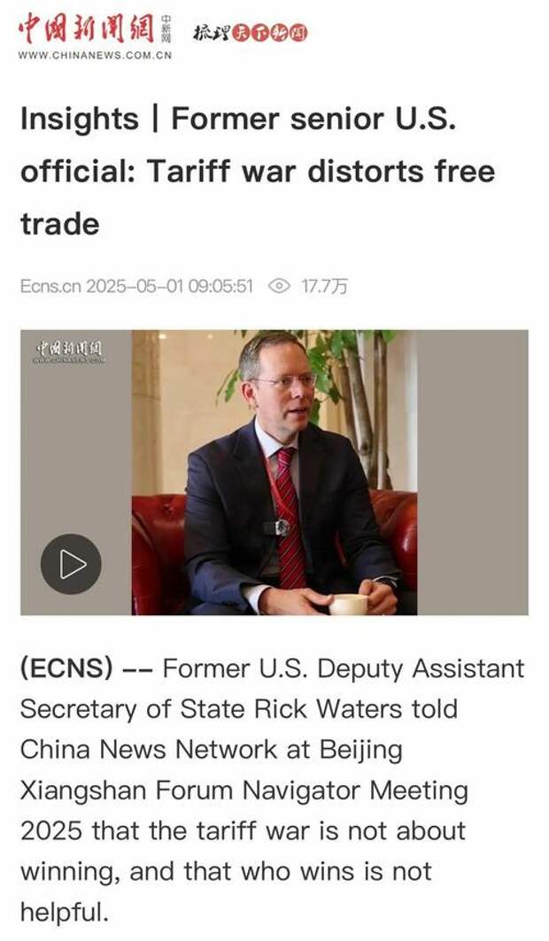 The China News Service, an outlet overseen by the United Front Work Department, amplified Waters’ remarks and quoted him directly, highlighting his claim that “the tariff war is not about winning.” His words were used to validate Beijing’s portrayal of the United States as disorganized and self-defeating.