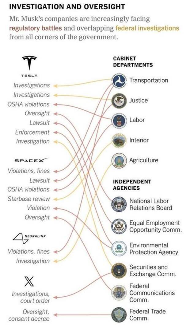 Elon himself has told stories about how his Starship launches are routinely delayed by crazy mandates. His recent launch-and-catch had to be delayed for studies on how the landing would impact the sharks, the whales, and the hearing of the seals. And that’s just the start of it. All of Elon’s companies are facing an astonishing blizzard of attacks from agencies.