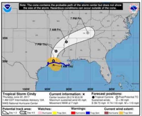 Oil traders who insist on staying long can hold out hope that production shutdowns related to Tropical Storm Cindy could lift the price of oil for a short period. It's also worth noting that Dennis Gartman, who recently said oil wouldn't rise above $44 a barrel again in his lifetime, just turned bullish folllowing a wave of downgrades from energy analyst. That could be good news...or maybe not.