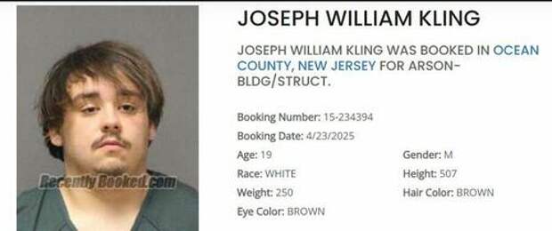 Ocean County Prosecutor Bradley D. Billhimer, New Jersey Department of Environmental Protection Commissioner Shawn M. LaTourette and Ocean Township Chief of Police Michal Rogalski announced that on April 23, 2025, Joseph Kling, 19, of Ocean Township (Waretown), was charged with Aggravated Arson and Arson in connection with a wildfire that started in Waretown on April 22, 2025, and continued to spread throughout the southern Ocean County area