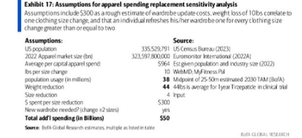 In a separate note, Bank of America analyst Geoff Meacham recently said weight loss will trigger a "wardrobe replacement cycle."