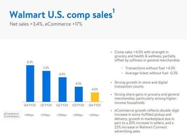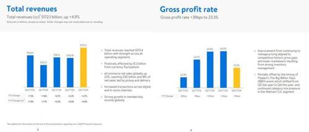 Discussing the quarter, CEO Doug McMillan said that "we crossed $100 billion in eCommerce sales and drove share gains as our customer experience metrics improved, evenduring our highest volume days leading up to the holidays"