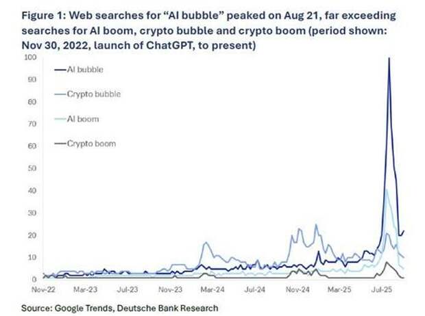 As DB's Adrian Cox writes today, the number of web searches for “AI bubble” has plummeted in the past month according to Google Trends.
