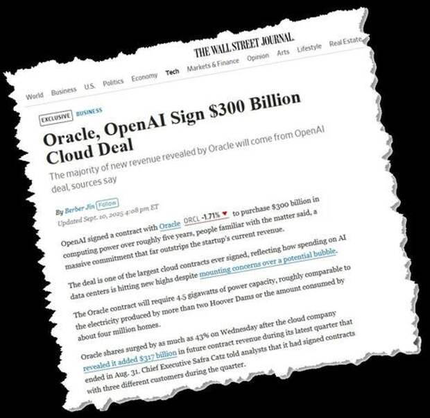 ... Oracle crashed the AI bubble party on Sept 10 with all the grace of a bull in a China shop, when it unveiled one of the biggest circle jerk vendor financing deals of all time (more below), announcing a massive $300 billion, five-year cloud computing deal with OpenAI.