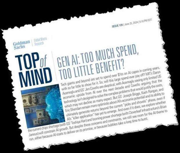 The first time the AI sector was rocked over fears of low/zero ROI, and gargantuan cash burn with nothing to show for it, was June 2024, when Goldman asked point blank if Gen AI was nothing more than "too much spend, too little benefit." i.e., a giant capital drain that will never lead to positive long-term returns for investors.