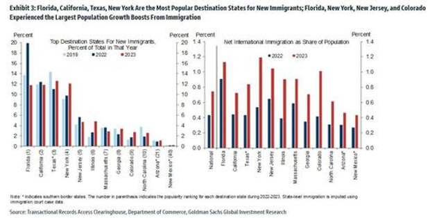 Where are they going? According to Goldman, the most popular destination states for new immigrants are Florida, California, Texas, and New York, which together have received over 50% of recent immigrants.