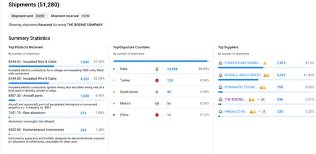 According to risk management firm Sayari Labs, the latest Boeing shipments primarily come from India, Turkey, South Korea, Mexico, and China. Suppliers in these regions are likely to be the most impacted.