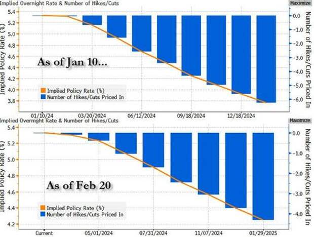 At its January meeting, the Fed left rates unchanged at 5.25-5.5%, as expected, but made key changes to its statement, which now reflects a more balanced outlook on rate cuts vs rate hikes. The statement removed guidance that “in determining the extent of any additional firming that may be appropriate” to a more dovish/balanced view that “in considering any adjustments to the target range”, but it added a hawkish caveat that it “does not expect it will be appropriate to reduce the target range until it has gained greater confidence that inflation is moving sustainably towards 2%. ”